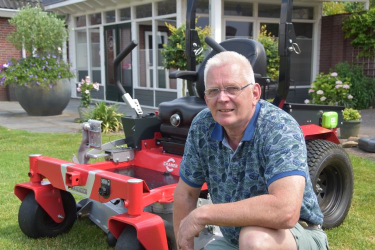 'Ik weet dat bedrijven, gemeenten en instellingen belangstelling hebben voor goede professionele accumaaiers. Shibaura-dealer Ryobi in Huissen zette mij op het spoor van de nieuwe accu-aangedreven Cramer-ZT's, die EuroGarden introduceerde. Dit was totaal iets nieuws voor me en ik wilde ook hier op een onafhankelijke manier naar kunnen kijken. De accu-Cramer-ZT zag er goed uit, maar let wel, ik wil eerlijk in mijn oordeel blijven en Cramer niet te vuur en te zwaard promoten. Mijn huidige missie is dan ook om deze accu-ZT nog beter te laten functioneren. Alles gaat dus elektrisch. Vrijwel iedereen kan met zo'n accumaaier overweg; onervaren mensen kunnen minder kapotmaken, zoals bijvoorbeeld de V-snaren. De machine produceert veel minder trillingen en geluid; een defecte elektromotor die de rotoren aandrijft, laat zich gemakkelijk vervangen. Ik constateerde dat deze accumachine veel minder geleidelijk versnelt dan een hydrostaat. Naar mijn mening kan en moet dat anders. Ik signaleerde op basis van eigen gebruikservaringen een aantal punten, waarop de engineers geattendeerd zijn. In beginsel vind ik het een fantastische machine. Als oud-brandweerman maak ik me bijvoorbeeld zorgen over hoe te handelen als zo'n zwaar 82V lithium-ion-pakket spontaan ontbrandt. En over de verzekering van deze producten. Maar dat geldt voor alle accumachines.'