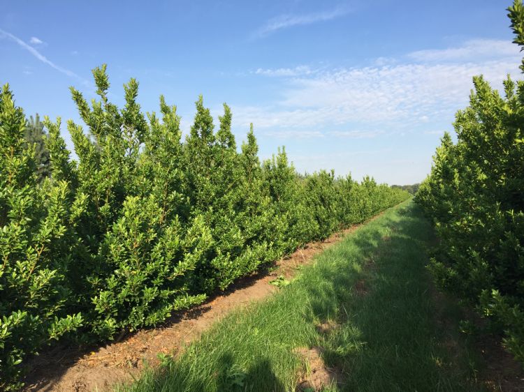 Ilex maximowicziana 'Kanehirae', Cloud Hedging. Brenda Swinkels van Smits Boomkwekerij: 'In het verlengde van Smits Hedging ligt Smits Cloud Hedging. Dit zijn planten die speciaal worden gemaakt om wolken te maken, ook naar eigen concept. Hiermee kan een wolk gebouwd worden met volwassen plantmateriaal, om direct uitstraling te krijgen.'