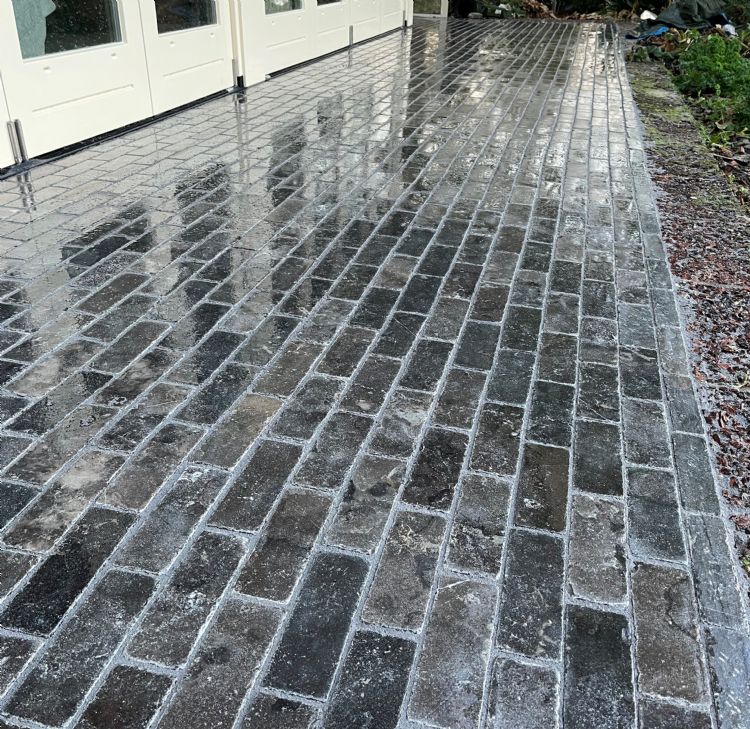 Project gevoegd met Aqua XP Premium Fijn donkergrijs. De hardsteen waaltjes zijn gelegd met een klein voegje van enkele mm.