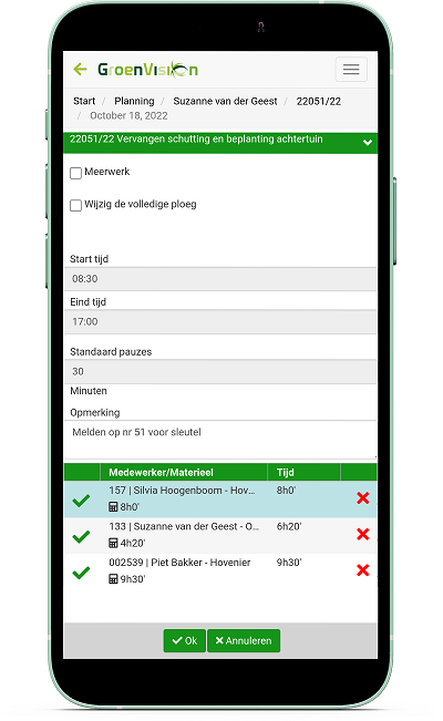 Wil je efficiënter, sneller en digitaal werken? Zoek je een oplossing waarmee alle projectkosten digitaal geregistreerd kunnen worden? Een programma waarmee je medewerker ook online inzicht heeft in het projectdossier? Maak dan gebruik van VisionMobile, de complete app die gekoppeld is aan GroenVision en zowel voor de medewerkers als voor de klant (VisionMobile-klantenportal) een mooie digitale tool is. Met VisionMobile werk je sneller, efficiënter en digitaal. Met de app kun je alles registreren, inzien en digitaal raadplegen.