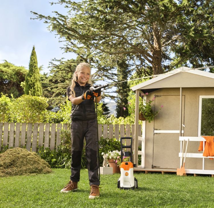 De speelgoedversie van de Stihl hogedrukreiniger is vanaf nu verkrijgbaar in het assortiment van Stihl fanartikelen. De speelgoedhogedrukreiniger heeft een sproeifunctie waar ook echt water uit komt.