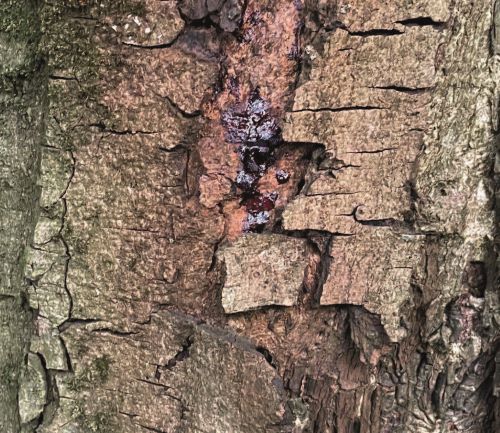 | | Zieke kastanjeboom herkennen bloedende bast |