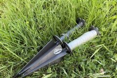 'Wij hebben deze Plantliner onder meer gebruikt om een nieuwe rechte lijn uit te zetten voor een haag, die flink teruggesnoeid was. Dit product van DeWit is zeker bruikbaar bij het kanten steken van gazons en borders.' De Plantliner ligt bij Hoveniersbedrijf Rozengaerde dus in de kist, gereed voor gebruik. Bosma deelt echter de ervaring van zijn collega's dat de tool minder bruikbaar is bij bestratingswerk, waarbij je tot dicht bij een gevel moet bestraten, of langs een erfafscheiding: 'In zo'n situatie kun je toch beter een lange, dunne pen toepassen om de draad op te spannen.'