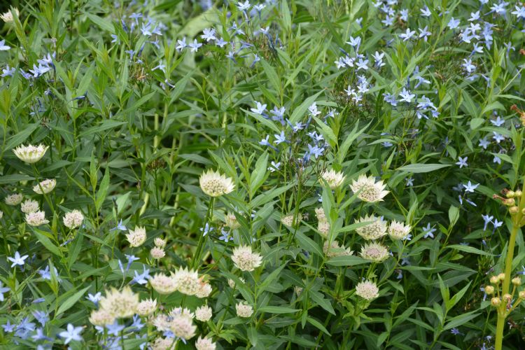 | | Astrantia major 'Buckland' met Amsonia tabernaemontana var. salicifolia |
