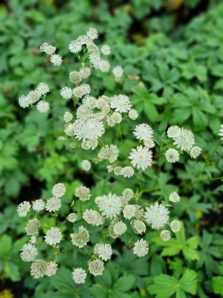 Deze superster wordt ook onder de foutieve naam 'White Giant' verhandeld. Het is een versie van de bekende 'Buckland', maar met grotere bloemen. Ik zag hem eens gecombineerd met een dubbele roze roos, heel mooi. Het is sowieso een goed idee om die twee te combineren, want ze houden van dezelfde grondsoort. Rozen houden niet van wortelconcurrentie. Daarom is het raadzaam om vaste planten te combineren die geen worteluitlopers maken, maar uit de pol groeien. Gelukkig doet Astrantia dat. Daarnaast krijg je een mooi beeld als je duidelijke bloemen afwisselt met subtielere bloemvormen, zoals Zeeuws knoopje (ik blijf volhouden ...).