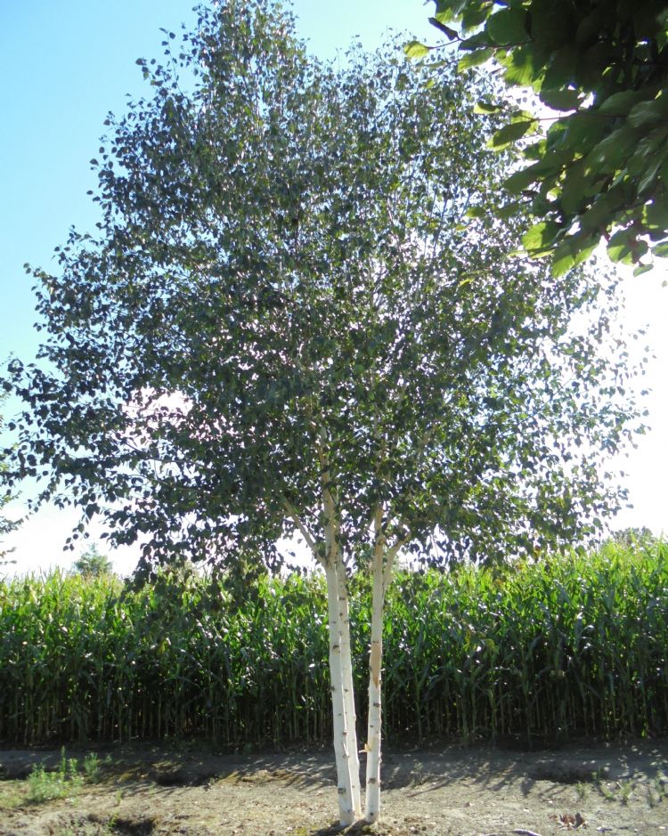 'Deze berk is bekend vanwege zijn witte stam. Het is een grote boom, die veel gebruikt wordt om karakter en contrast in de tuin te brengen.'