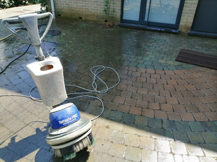 Het gebruik van de Terrazza TMC is een voortreffelijke keuze voor het reinigen van uw terras en oprit. Deze methode maakt gebruik van een unieke combinatie van lange en korte borstelharen, waardoor vuil zowel van het oppervlak als uit de voegen wordt verwijderd, zonder schade aan te richten. Een opmerkelijk contrast met traditionele hogedrukreiniging, die het oppervlak kan beschadigen en voegen kan wegspoelen.
