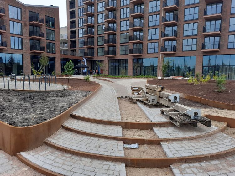| | Hoogteverschil daktuin Molenplein Zoeterwoude |