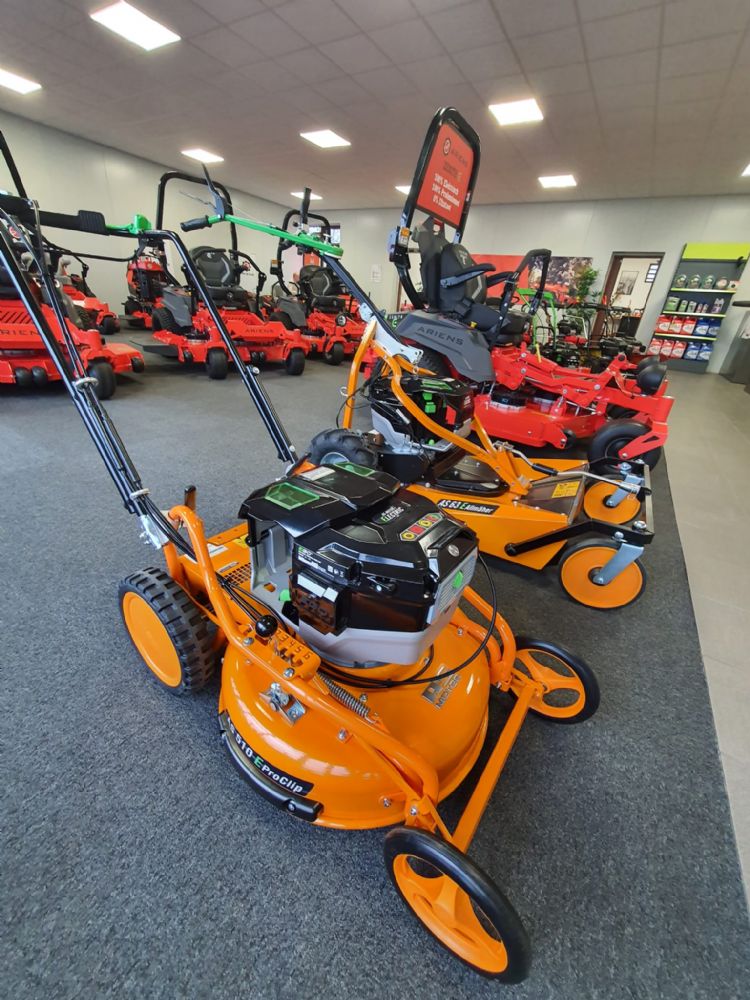 | | De showroom kleurt meer en meer oranje: bijvoorbeeld met de bekende elektrische AS E-Proclip, een elektrische mulchmaaier, op een EGO accu. |