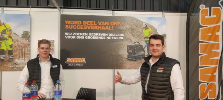 Op de stand van Samac, het nieuwste lid van de Tobroco groep, zetten Kees en Simon de in Zwolle vervaardigde trilplaten en stampers in de schijnwerpers. Ze benadrukken trots de oerhollandse kwaliteit van deze producten.