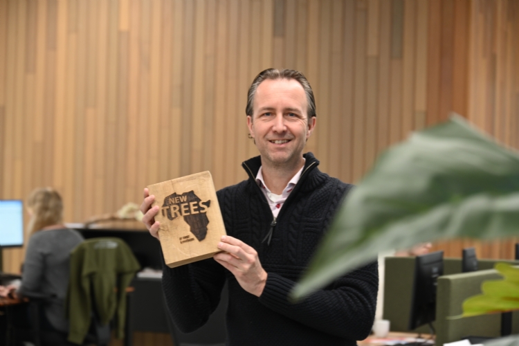 In Uden ontving Bas van de Wiel van ADEZZ de Newtrees plaquette uit handen van hoofdredacteur Hein van Iersel.