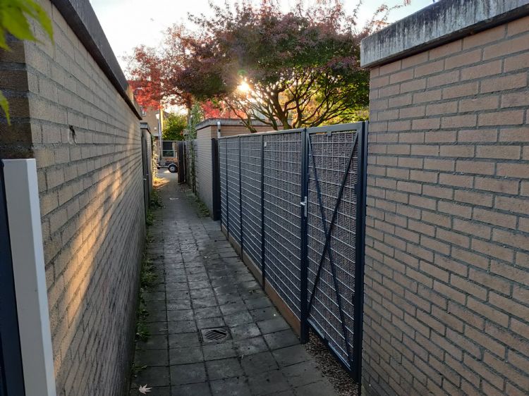 | | Schutting en tuindeur gevuld met perzikstenen |