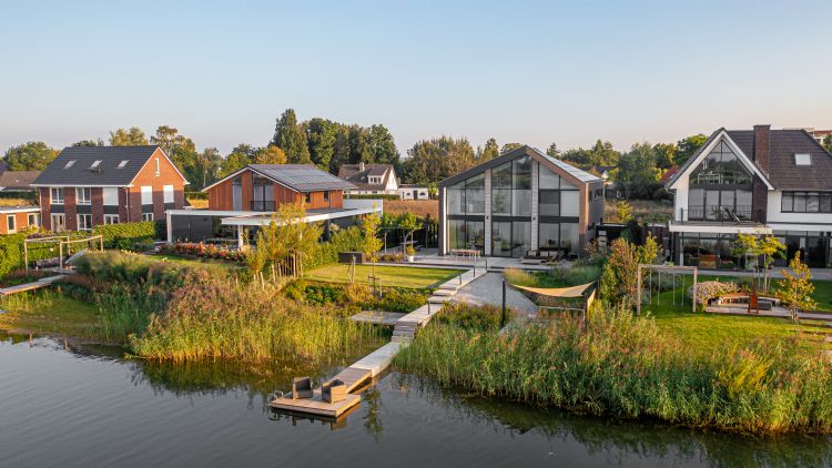 | | Door de catwalk is de tuin een verbindend element tussen water en woning. |