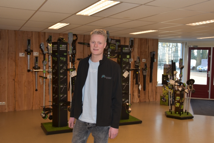De jeugdige Hennekes volgde een opleiding tot servicemonteur mobiele werktuigen bij Aventus. Na het afronden van niveau III koos hij ervoor om bij een bedrijf in de tuin- en parksector te gaan werken. Toen hem de kans geboden werd, is hij aan de slag gegaan bij dit Almense bedrijf om daar mede de afdeling Tuin & Park gestalte te geven. Hij kwam tot dusver veel in contact met particulieren en buitensportverenigingen. Maar, met de professionele lijn van EGO gaat Hennekes zich ook richten op hoveniers, campinghouders en begraafplaatsen in de omgeving. Hij zegt een steeds grotere fan geworden te zijn van elektrisch handgereedschap. Dat hij hierin een missie heeft, wordt mij al snel duidelijk. Zowel links als rechts van de showroomentree word je bijna opvallend geconfronteerd met machines van het merk EGO, dat in Nederland geïmporteerd wordt door Stierman de Leeuw in Apeldoorn.