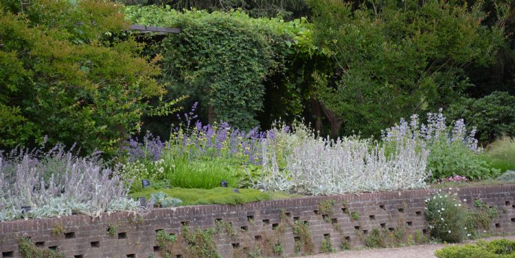 7. Nepeta faassenii-cultivars Kattenkruid maakt op armere en drogere grondsoorten duidelijk grijzer blad dan wanneer hij hard groeit op vruchtbare bodem of altijd vocht tot zich kan nemen. Cultivars van Nepeta x faassenii en racemosa zijn het meest grijs. De bloemkleur kan variëren van wit, zoals 'Snowflake', tot donkerpaars, zoals 'Blue Wonder'. 'Walkers Low' is een zeer bekende cultivar die nog steeds goed functioneert en naar mijn mening beter blijft staan dan de andere veel verkochte selectie 'Six Hills Giant'. Het 'Low' van de naam 'Walkers Low' slaat overigens niet op de hoogte van de plant. Hij heeft zijn naam te danken aan de gelijknamige tuin waar hij gevonden is. 60 tot 80 centimeter hoog is bepaald niet laag te noemen.