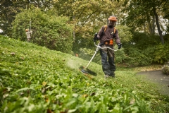 De accubosmaaier FSA 120 van STIHL combineert een hoog vermogen met de voordelen van accutechnologie. Hij wordt aangedreven door een borstelloze, elektronisch gestuurde elektromotor (EC), die overtuigt door een hoog koppel en een snelle voortgang van het werk. Tegelijkertijd is de machine dankzij haar stille werking ook geschikt voor gebruik in geluidsgevoelige omgevingen zoals dichtbevolkte woonwijken of in de buurt van ziekenhuizen, begraafplaatsen of scholen.