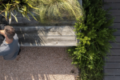 Traditiegetrouw organiseert Tuinvisie in februari een gezellige (winter)barbecue om het nieuwe tuinseizoen in te luiden. Dit jaar kreeg de bijeenkomst een extra feestelijk tintje door de bekendmaking van 'De Hovenier van het Jaar'. Deze wedstrijd, die Tuinvisie sinds dit jaar organiseert, heeft tot doel het ambacht van het hoveniersvak extra onder de aandacht te brengen. De verkiezing is gebaseerd op een project. Dit verklaart meteen waarom er meer tuinen dan hoveniersbedrijven aanwezig waren. Sommige deelnemers probeerden met meerdere projecten een gooi te doen naar de gouden tuinkabouter. Winnende tuinHet juryrapport schreef over de winnende tuin: 'Een groene tuin in de stijl van Piet Oudolf, met organische vormen, hoogteverschillen en prachtige bloemrijke beplanting die aantrekkelijk is voor vele soorten dieren. Er is gebruik gemaakt van luxe bestratingsmaterialen, maar in een goede balans, soms glooiend en soms strak.'