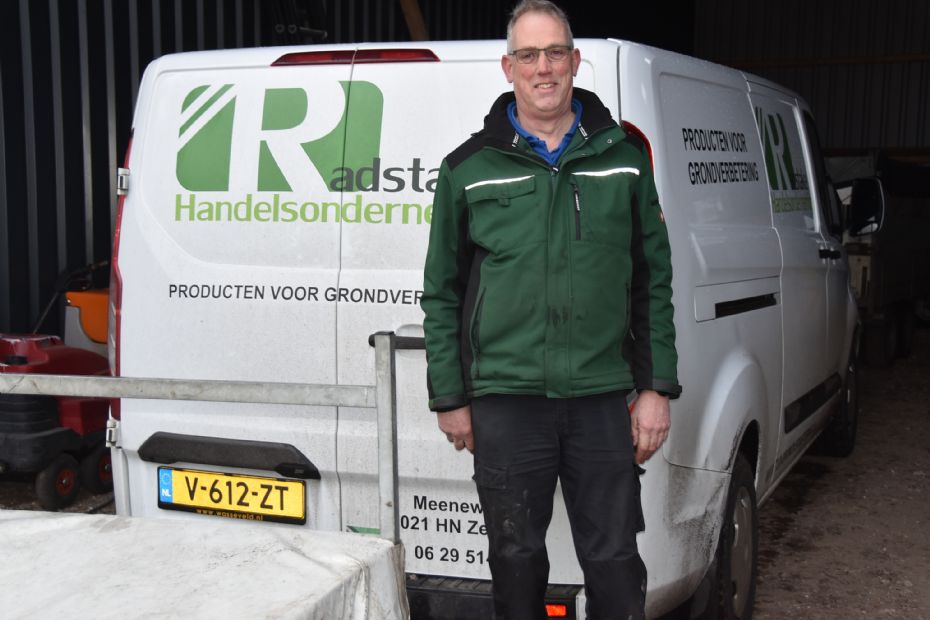 Radstake vertelt verder: 'Dat op grote schaal produceren van gft-compost was een dynamische baan, waarbij ik soms ook de shovel moest bedienen. Op enig moment wilde ik een carrièreswitch maken. Ik zag wel handel in dit product voor hoveniers en gemeenten in mijn omgeving. Maar toen de VAR (tegenwoordig Attero, red.) de meerwaarde van dit product inzag, koos de reststromenproducent dat bedrijf als afnemer voor dit product. Ik aanvaardde elders een verkopersfunctie, maar die kantoorbaan stond me al snel tegen, dus begon ik circa negentien jaar geleden voor mezelf. Op bescheiden schaal beleverde ik particulieren en hoveniers met gft-compost en potgrond. Dat betrok ik bij Heicom in Oldebroek, waar Marcel Straatman aangetreden was. Hij was een goede bekende van me en ik spreek hem nog regelmatig. Aanvankelijk werkte ik één dag in de week als ondernemer, terwijl ik me de andere dagen liet inhuren als zzp'er om klussen uit te voeren. Ik wilde mijn bedrijf vanuit de ouderlijke boerderij in het buitengebied opschalen, maar qua vergunningen had dat nogal wat voeten in aarde. Uiteindelijk, in 2011, kwam het toch op zijn pootjes terecht. Momenteel werk ik circa twee dagen in de week als zzp'er en de rest van mijn werktijd kan ik flexibel besteden aan mijn handelsonderneming. Recentelijk heeft een oud boerderijgedeelte plaatsgemaakt voor een nieuwe loods.'