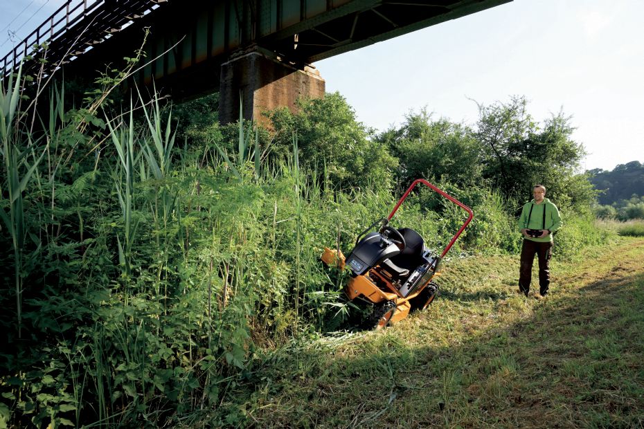 Met betrekking tot ruwterreinzitmaaiers refereert Helthuis aan de twee- en vierwielaangedreven maaiers van AS-Motor. De belangrijkste ontwerpkenmerken hiervan zijn de stabiliteit van het messensysteem, de overbrengingsverhoudingen van de aandrijfkrachten, de vorm van het maaidek, de positie van het zwaartepunt en het uithoudingsvermogen en de prestaties van het aandrijf- en koelsysteem. 'Je kunt er zelf op rijden, maar er zijn ook types met radiografische bediening', vertelt Helthuis. 'Dat geldt ook voor de klepelmaaiers van AS-Motor. Daarnaast heeft dit merk onder andere een professionele lijn loopmaaiers, onkruidborstelmachines en mulchmaaiers.'