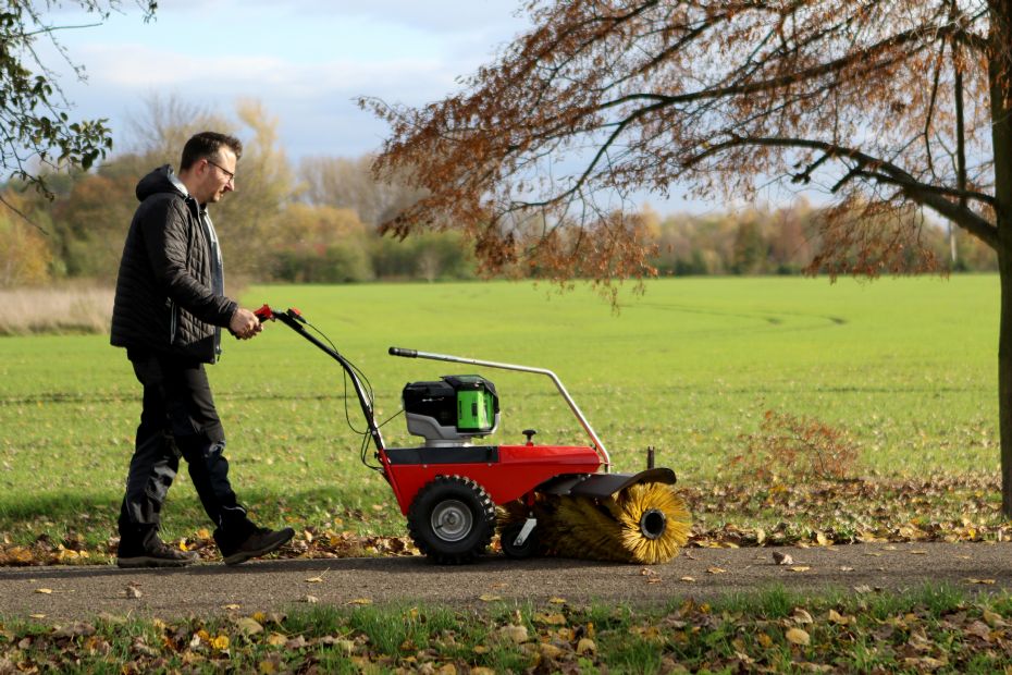 Het blijkt dat Helthuis Tuin- en Parkmachines sinds kort ook veegmachines van het Tsjechische merk Vari importeert. Die sluiten aan bij de AS 60 EWeedHex en zijn bestemd voor het vegen van vuil en losgemaakt onkruid op verhardingen. Ook hier is het een EGO-motor die de machine aandrijft. Helthuis: 'Je kunt de EGO-accu's dus zowel in de onkruidborstel als in deze veegmachine toepassen. En natuurlijk passen die accu's ook weer in de bosmaaiers, stokzagen, bladblazers en kettingzagen die je al hebt of wilt gaan aanschaffen. Hiervan was al een benzineversie beschikbaar met een 170cc-Honda GCVx-viertaktmotor.'