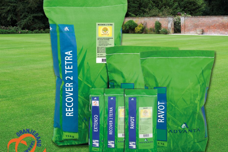 Voor de jaarlijkse onderhoudsbeurt en tussentijds herstel van alle gazons is het speciaalmengsel Recover 2 Tetra bedoeld; dit bevat 60 procent Engels raaigras. 'Je kunt daar in het vroege voorjaar al mee starten, omdat een substantieel deel van het Engels raaigras tetraploïde is. Dat kiemt al bij lagere bodemtemperaturen en kan door zijn groeikracht de concurrentie met de bestaande zode uitstekend aan', legt Steunenberg uit. 'Door de betere stresstolerantie en het grote herstelvermogen groeit het gras ook onder droge en/of zoute omstandigheden net even wat langer door. Je maakt de mat daarmee klimaatbestendiger.' Alle mengsels in Advanta's nieuwe gazonlijn zijn geschikt voor robotmaaien en inzetbaar op alle grondslagen. De zaden zijn omhuld met de Headstart Gold-coating; deze innovatieve zaadbehandeling met een op biostimulanten en nutriënten gebaseerde werking vergroot de slagingskans van alle zaaiprojecten. Zie het maar als graszaad met een ingebouwde voorsprong, dat zich sneller en gelijkmatiger vestigt, aanzet tot meer scheut- en wortelgroei en uiteindelijk resulteert in vitaler gras.