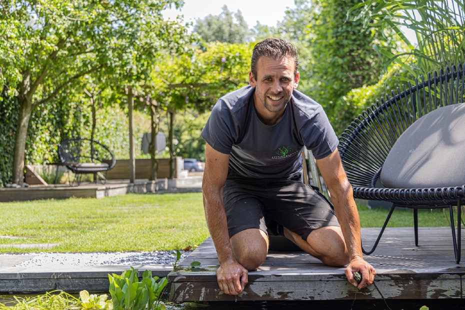 Kelvin Bosman legt ook vaak houten vlonders aan. 'Kunststof vlonders doen we daarentegen bijna niet; het is ook niet onze favoriet. Een houten vlonder staat met de natuurlijke uitstraling veel mooier in de tuin.' Al met al is Bosman zeer te spreken over van Van Dorp Hout als vaste leverancier van alle houten materialen voor zijn tuinprojecten. 'Een groot voordeel is dat het gemakkelijk schakelen is met onze contactpersonen bij het bedrijf. We kunnen snel informatie uitwisselen. Bovendien is het fijn dat we een vast aanspreekpunt hebben en dat het niet elke keer wisselt, want dat kost te veel tijd en energie. Er zijn zo veel projecten; daarom is het handig dat degene weet waar je mee bezig bent. Hierdoor is het heel plezierig samenwerken.'
