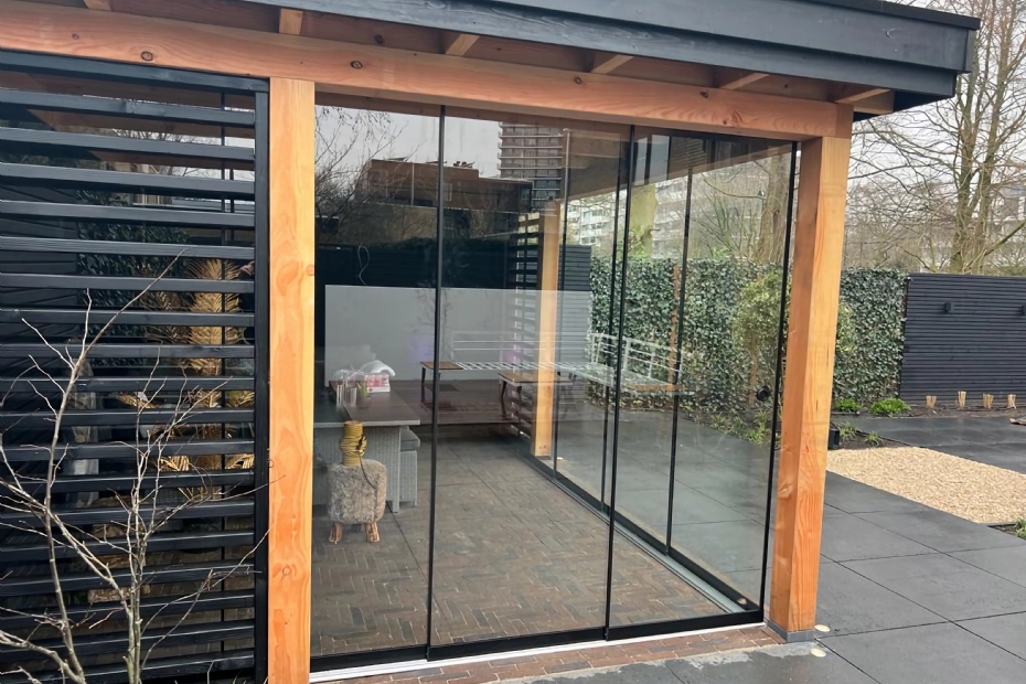 Kelvin Bosman zoomt eerst in op een compleet tuinproject dat onlangs is gerealiseerd in Leidschendam. Naast al het groen en de beplanting heeft de hovenier gezorgd voor de houten elementen, zoals een overkapping, een vlonder en een schutting die allemaal door Van Dorp Hout zijn aangeleverd. 'Het houtmateriaal dat is gebruikt voor de overkapping, is douglas voor de palen en zwarte rhombusbekleding voor de wanden. Er zijn maatwerkramen in geplaatst voor een binnenbeleving, waardoor je zowel in de zomer als winter van de overkapping gebruik kunt maken. De vlonder is van bankirai-hardhout gemaakt. De schutting bestaat ook uit rhombus. We proberen altijd alles in één bepaalde stijl te houden, en niet dat je de tuin met verschillende kleuren aankleedt, maar juist rust creëert.'