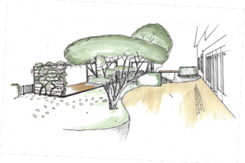 Met het schetsontwerp wist de student de opdrachtgever, die oorspronkelijk een strakke tuin met rechte lijnen wilde, te overtuigen. Het beschermende effect van de hagen en het verbindende effect van de golvende beweging overtuigde de opdrachtgever.