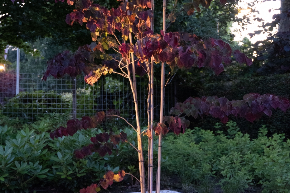| | Cercis canadensis ‘Forest Pansy’ met verlichtingsspot van In-Lite |