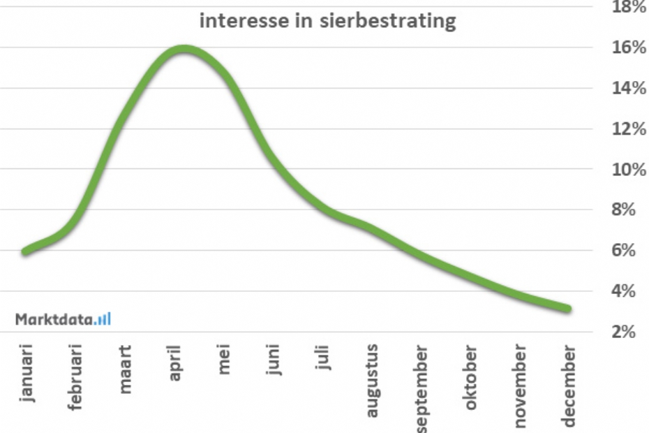 Sierbestrating uit in de tuin wordt vooral gezocht bij de bekende bouwmarkten |