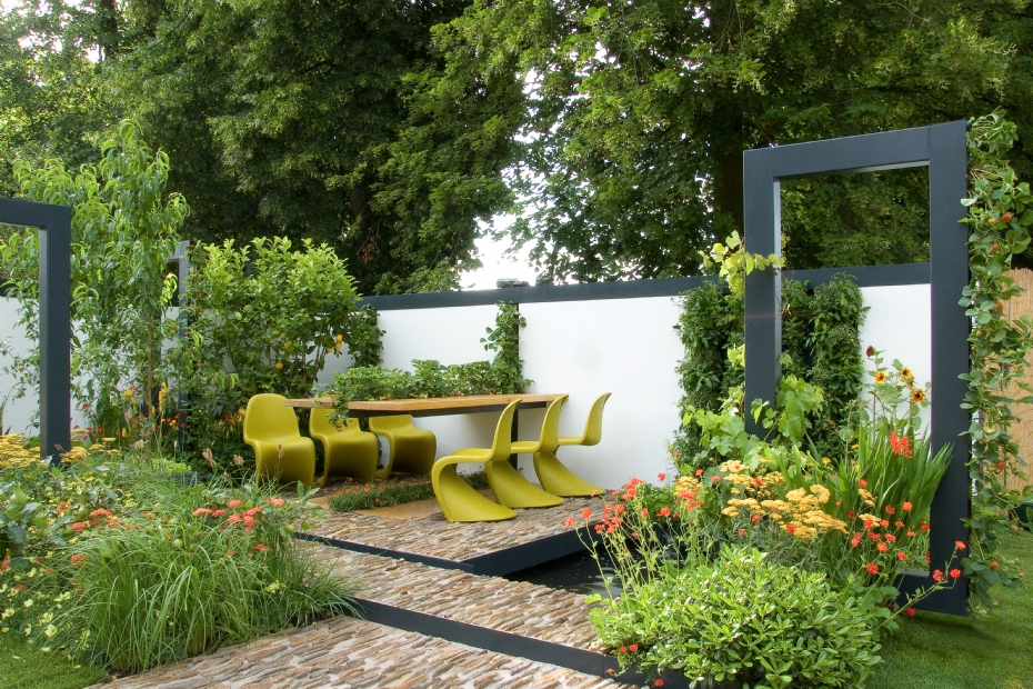 De belangrijkste kleuren in deze stijltrend zijn blauw en paars. Er worden zowel organische als strakke vormen gebruikt in deze tuin. Met elementen zoals een metallic plantenbak krijgt de tuin ook een futuristisch tintje. Ook worden bij deze trend veel meubels en materialen met een open structuur gebruikt. Blauwe en paarse planten kunnen de tuin een mysterieuze sfeer geven, zeker in de vroege avond. Denk bijvoorbeeld aan soorten als lavendel (Lavendula), salie (Salvia) en ijzerhard (Verbena).