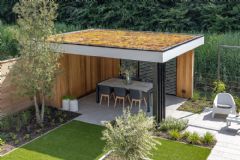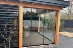 De tuin die Janneau van Gils, eigenaar van JvG Bestratingen en Tuinaanleg, mag aanleggen hoort bij een nieuwbouwhuis in Waddinxveen. De klant wilde een carport van 6,5 meter breed, met een overspanning zonder middenstaanders. Met alleen houten balken zou deze niet stabiel genoeg zijn. 'Er moest hiervoor dus een veilige en tegelijkertijd mooie oplossing worden gevonden,' aldus de hovenier uit Waddinxveen.