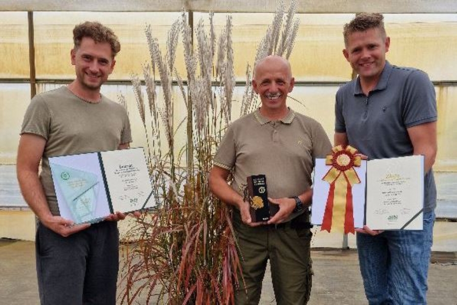 Krzysztof Słowiński ontvangt drie prijzen voor zijn rode Miscanthus. Rechts Tieme van den Haak van Plantipp