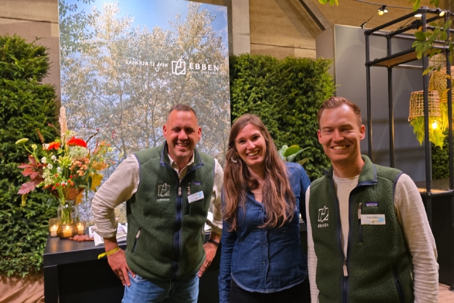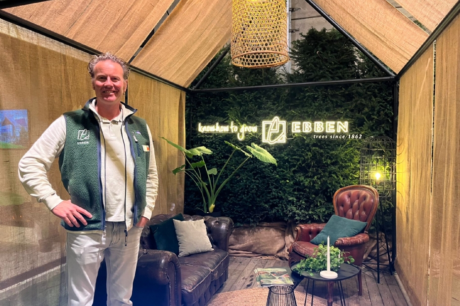 Bij Ebben spelen ze een thuiswedstrijd. Sander de Klerk: 'We laten zien dat we goed zijn in mooie meerstammige, ook hoog opgaande, zodat je in kleinere tuinen daar ook mee kan werken. Maar we zien hier ook een rol voor onszelf om meer kennis te delen over klimaatadaptieve beplanting en bomen.'