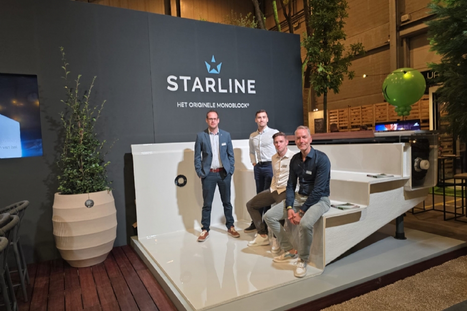 Niels Haverkort, SepSmeets, Glenn bloemen en Robert van der Maat zijn Team Starline Pool. Hopen op een leuke, gezellige avond met belangstellende meesters. Signature is de naam voor hun nieuwe maatwerk zwembaden.