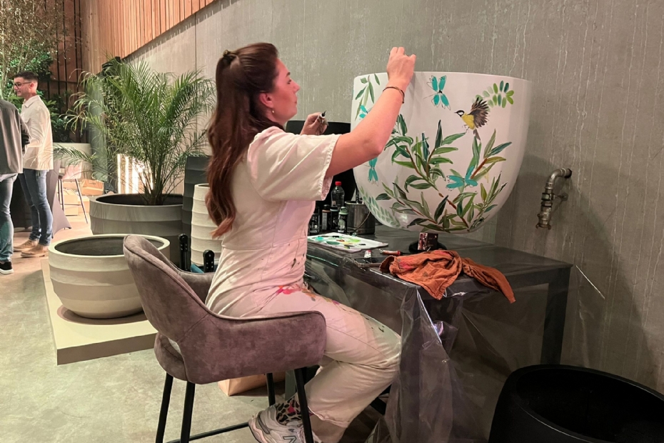Bij Luca Lifestyle worden live op de beursvloer de welbekende lichtgewicht potten handbeschilderd(!) door kunstenares Marianne Roelofs. De potten blijven beschilderd gegarandeerd ook enkele jaren mooi als ze buiten in de tuin staan.