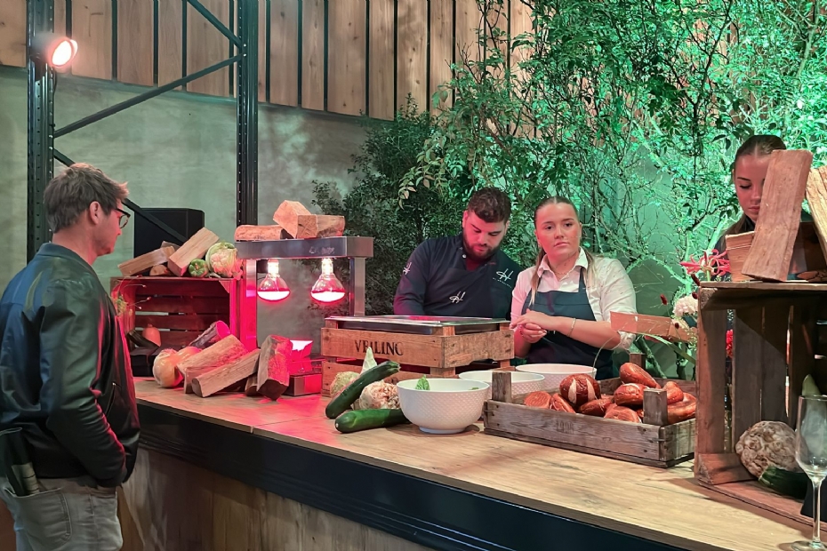 Meesters in de Tuin zou Meesters niet zijn zonder live cooking op zo’n beetje iedere hoek van de beursvloer. Luxe broodjes hamburger, friet met truffelmayo, garnalen van de grill en nog veel, veel meer...!