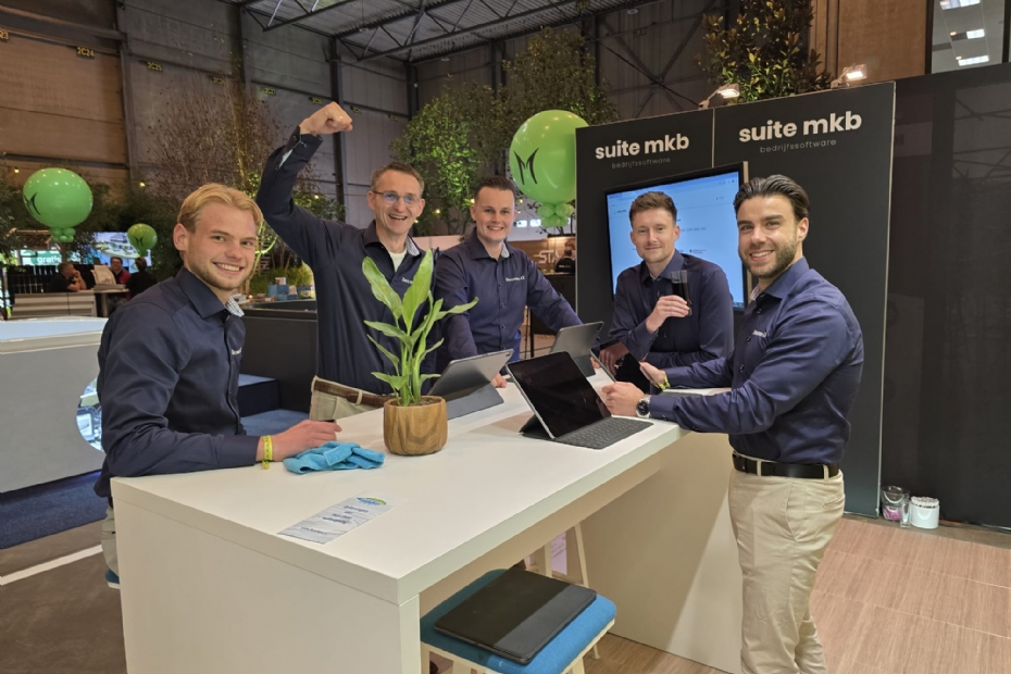 Jesse van den Brink, Jesse Roozeboom, Leo Kodde, Anton Verlek, Maarten van Eeden bemannen de stand van Become-IT. Zij staan er voor de gezelligheid, de contacten en het goud in een gloednieuwe stand.