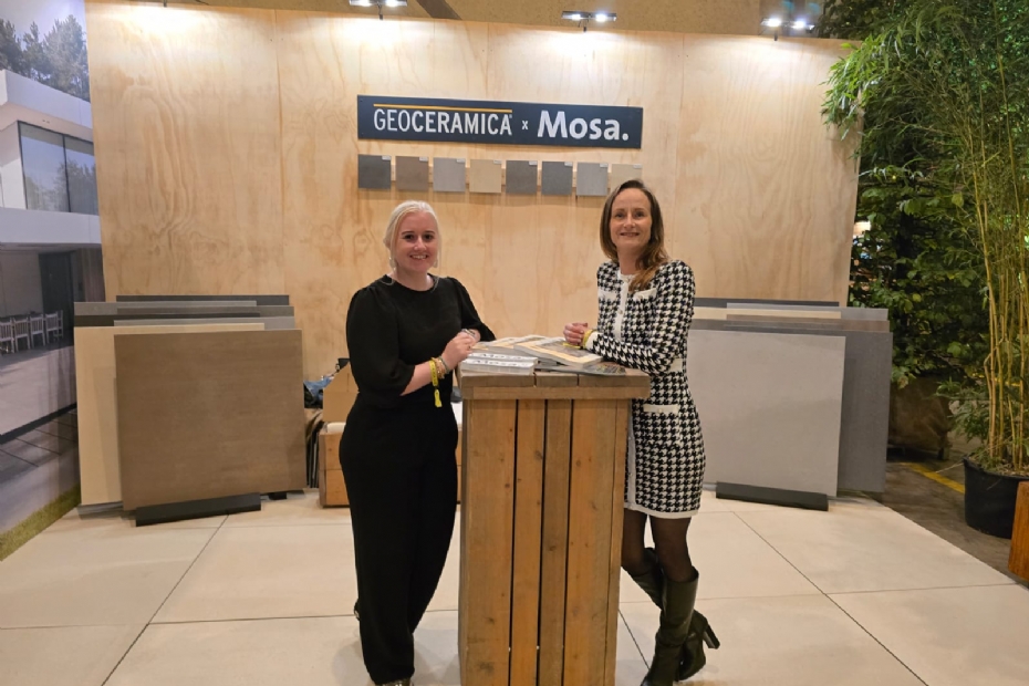 Fleur Fassbender en Chantal Spijker MBI De Steenmeesters. Eerste keer op MidT. Het compleet Nederlandse product GEOCERAMICA is in samenwerking met Koninklijke Mosa gemaakt en voor binnen en buiten. In alle maten. Op naar een succesvolle avond.