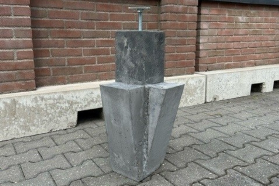 Stam benadrukte de unieke eigenschappen van het product: 'Deze betonpoer is echt helemaal nieuw. Het is in feite een standaard poer, maar met een zijoplegging. Hierop kun je eenvoudig een verbindingsbalk tussen de betonpoeren laten rusten, waardoor je het railsysteem voor de plaatsing van glazen wanden makkelijker en mooier kunt wegwerken.'
