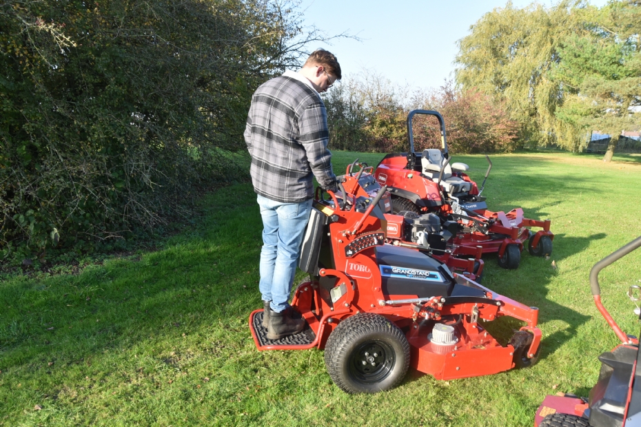 Met betrekking tot machines die geschikt zijn voor hoveniers vestigde Morsink de aandacht op de stand-onmaaiers, de Toro Grand Stands. Die levert Toro zowel met een benzinemotor als in een accu-aangedreven versie. Dit type zero-turn is zeer compact en uiterst wendbaar. Met je knieën leunend tegen een kussen sta je op een platform achter op deze maaier. Daarbij heb je een uitstekend zicht op wat je moet maaien en de aanwezige obstakels. 'Het is een ideale machine voor gebruik op campings, om kleine, lastige stukjes gras te maaien zonder iets te raken', aldus Morsink. En hij voorspelt: 'In de VS wordt deze machine al heel populair, en net als eerder de zero-turn zal ook deze machine Europa veroveren.'