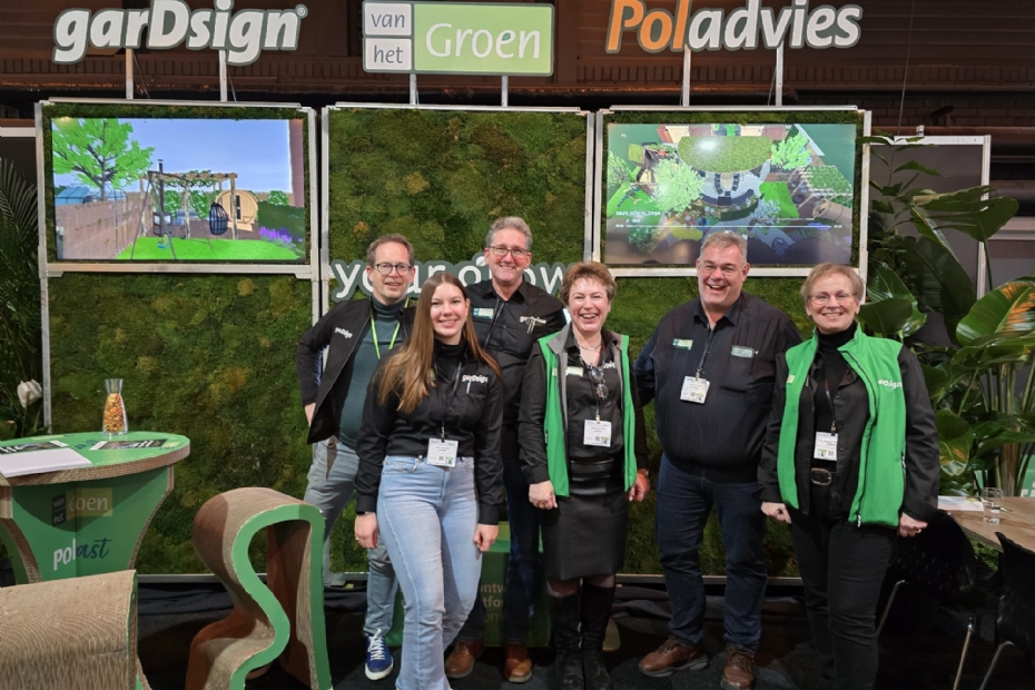 Remko Matsinger, Tessa van de Pol, Henri Jansen, Jolanda van de Pol en Teunis van de Pol en Thea Blijleven-van Workum van team Poladvies, garDsign en van het Groen, samen: Yourgrow. Dinsdag 21 januari start de eerste sessie van de nieuwe leider en ondernemersschaps training voor o.a. hoveniers. Er kan ingeschreven worden op yourgrow.net.
