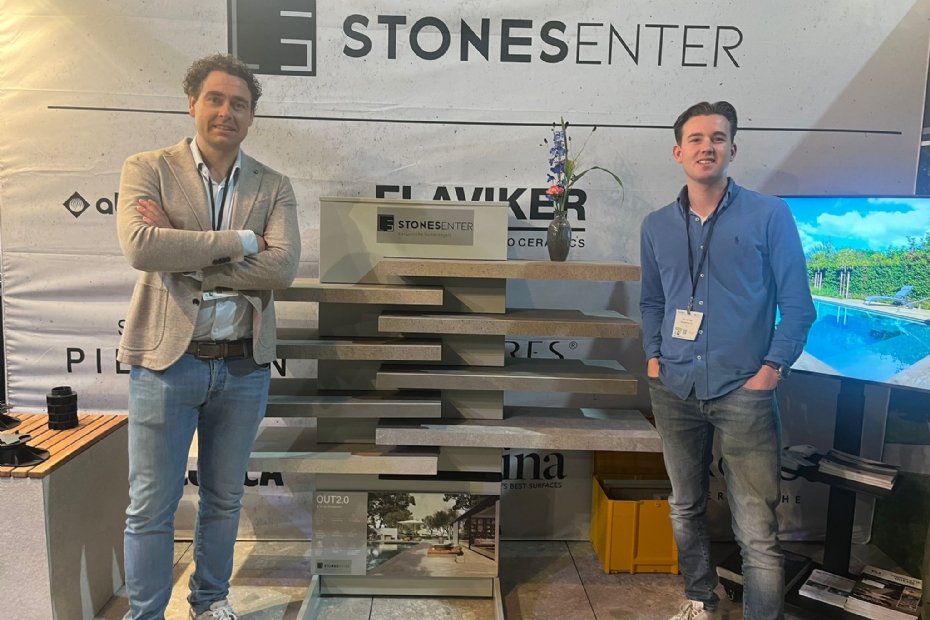 Bij StonesEnter, groothandel in keramische buitentegels, hebben ze nieuwe keramische zwembadranden. Helemaal nieuw is het niet, maar er is wel vers van de Italiaanse pers de lijn voor 2025 gelanceerd. Met mooie warme zandkleuren en de randen zijn waterjetgeslepen. Dit zorgt voor een strakker resultaat dan gewoon zagen. Op de beurs wordt gekeken of er standaard 4 of 6 kleuren in het assortiment komen.