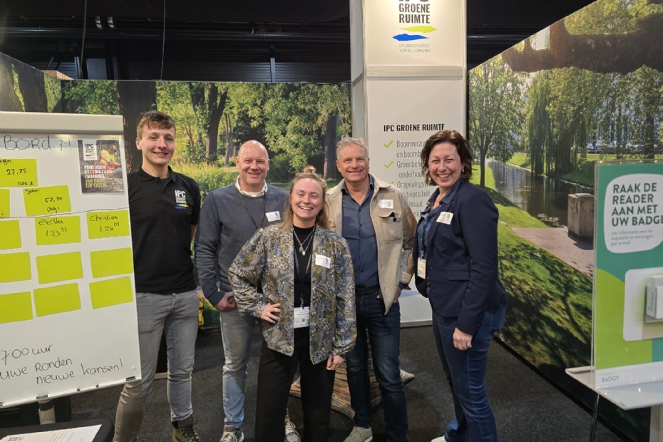 Bram Volker, Gijs Bakker, Meike Wessels, Johan van Apeldoorn en Annet Wouters - van Beuzekom, team IPC Groene Ruimte. Biodiversiteit en klimaat zijn de topopleidingen op het moment en de toekomstgerichte groenvoorziener.