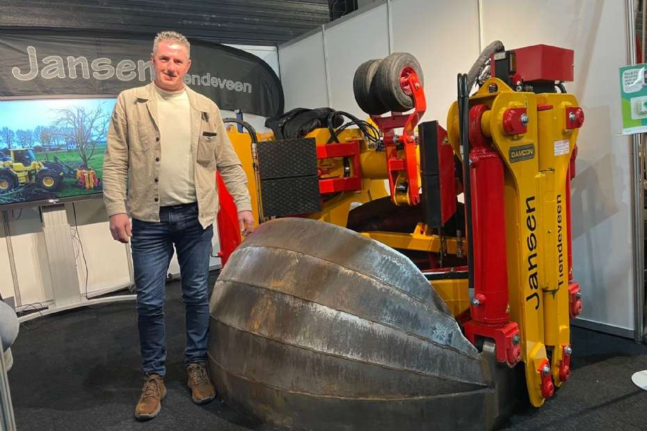 Rene Kikkert van Jansen Tiendeveen staat voor het eerste jaar op GSV en specifiek voor hun DAMCON verplanter met een diameter van 2 meter. Hun motto: 'Kappen is makkelijk, verplanten is waardevol'