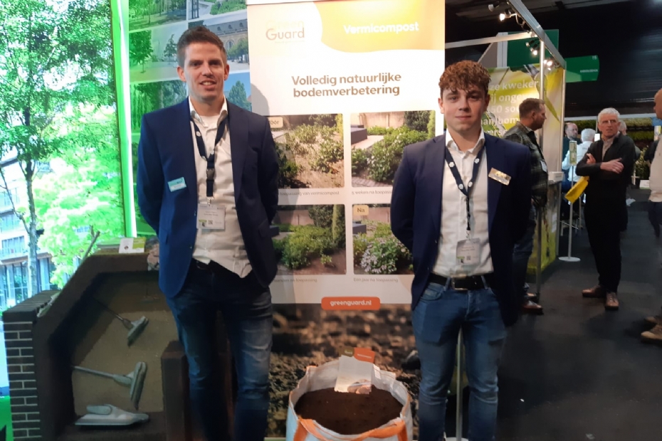 Roeland van Os en Sjoerd Hagen (l) van GreenMax zijn bezig met een dealernetwerk voor hun vermicompost oftewel wormenpoep. Een kwakkelende border of grasveld knapt er helemaal van op en je hebt er een jaar lang plezier van.