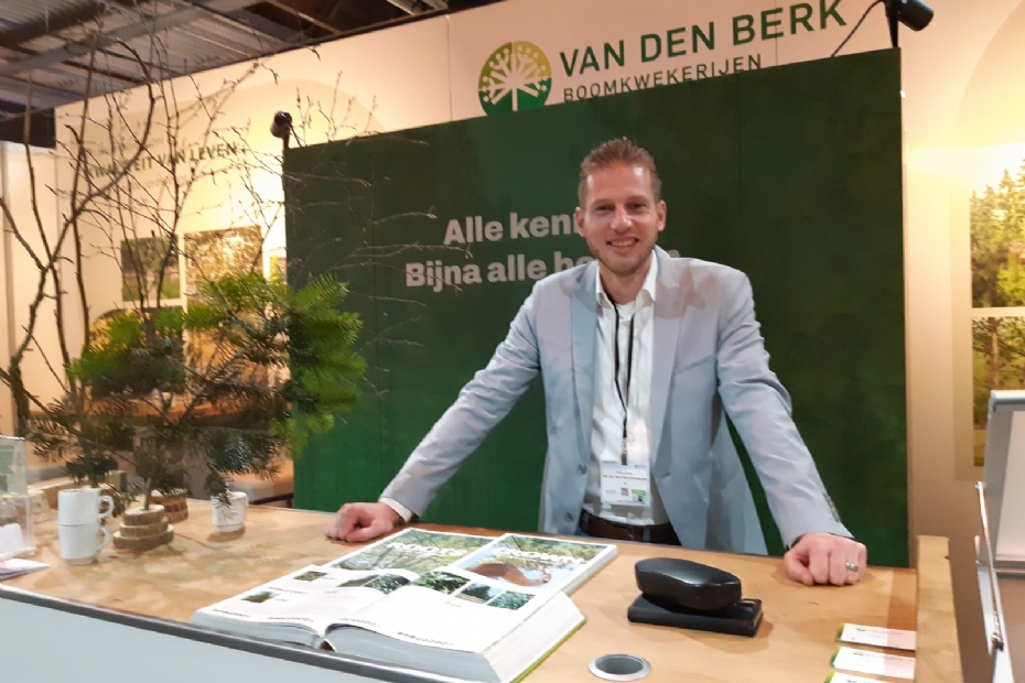 Van den Berk Boomkwekerijen staat met een aantal grote bomen op de beurs. Rob Linkels vertelt dat ze de focus deze editie leggen op het Van den Berk College, met cursussen over onder meer sortimentskennis, bodem en klimaat & biodiversiteit.