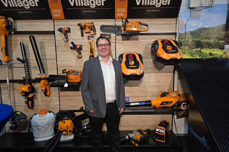 Johan Tijms van Tijms Products is voor eerst in jaren weer op de GSV. Importeur van Villager machines, een assortiment van bouw tot tuin- en parkmachines, geheel compleet.