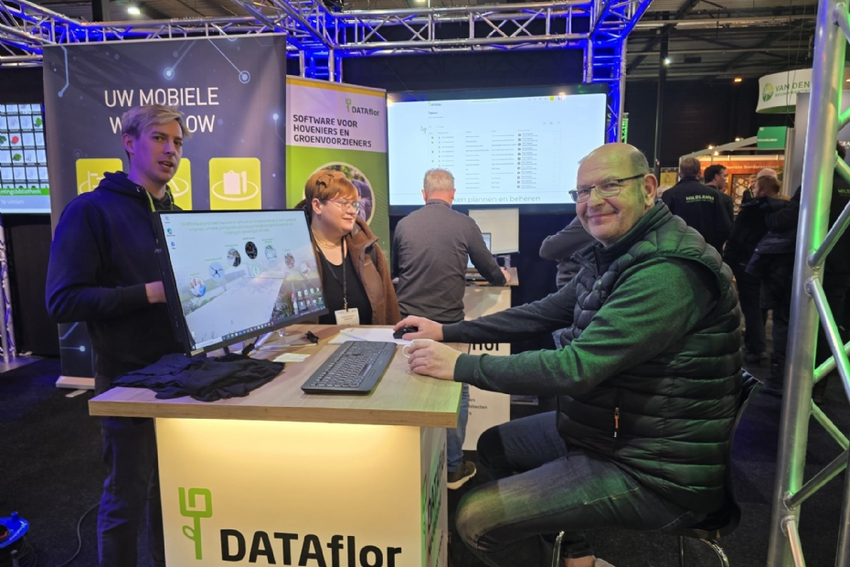 Hans Gageler, niet geheel onbekend, van Dataflor. All-in-one IT-oplossing voor hoveniers, architecten en aanverwanten. Van ontwerp, inmeten tot uitvoering en beheer.
