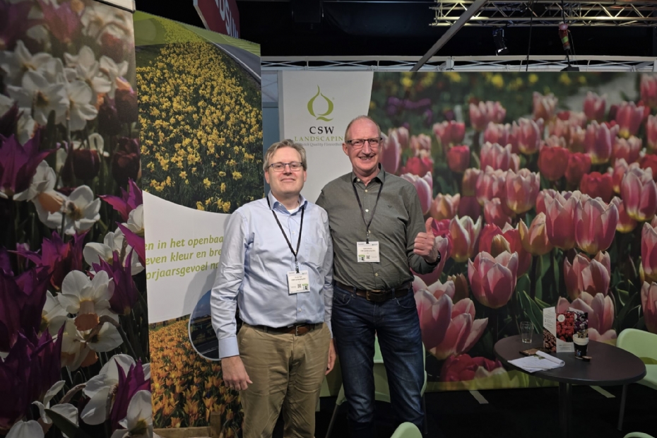 Ton de Haan en Sjaak Verkade van CSW landscaping. Eerste keer op de GSV. Beschouwen zichzelf als dé bloembollen groothandel voor de professionele gebruiker. Ook voor aanleg onder gras.